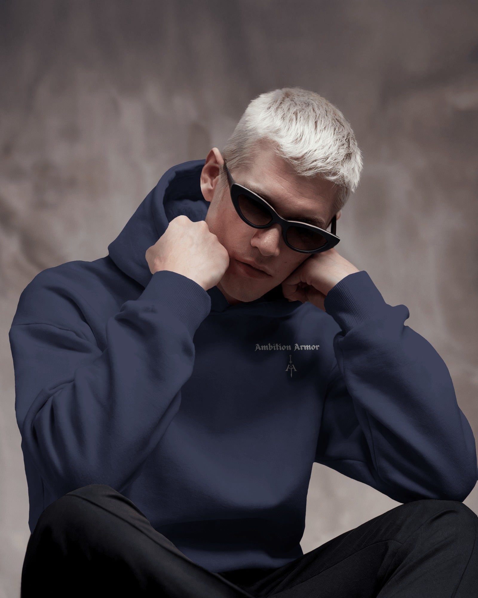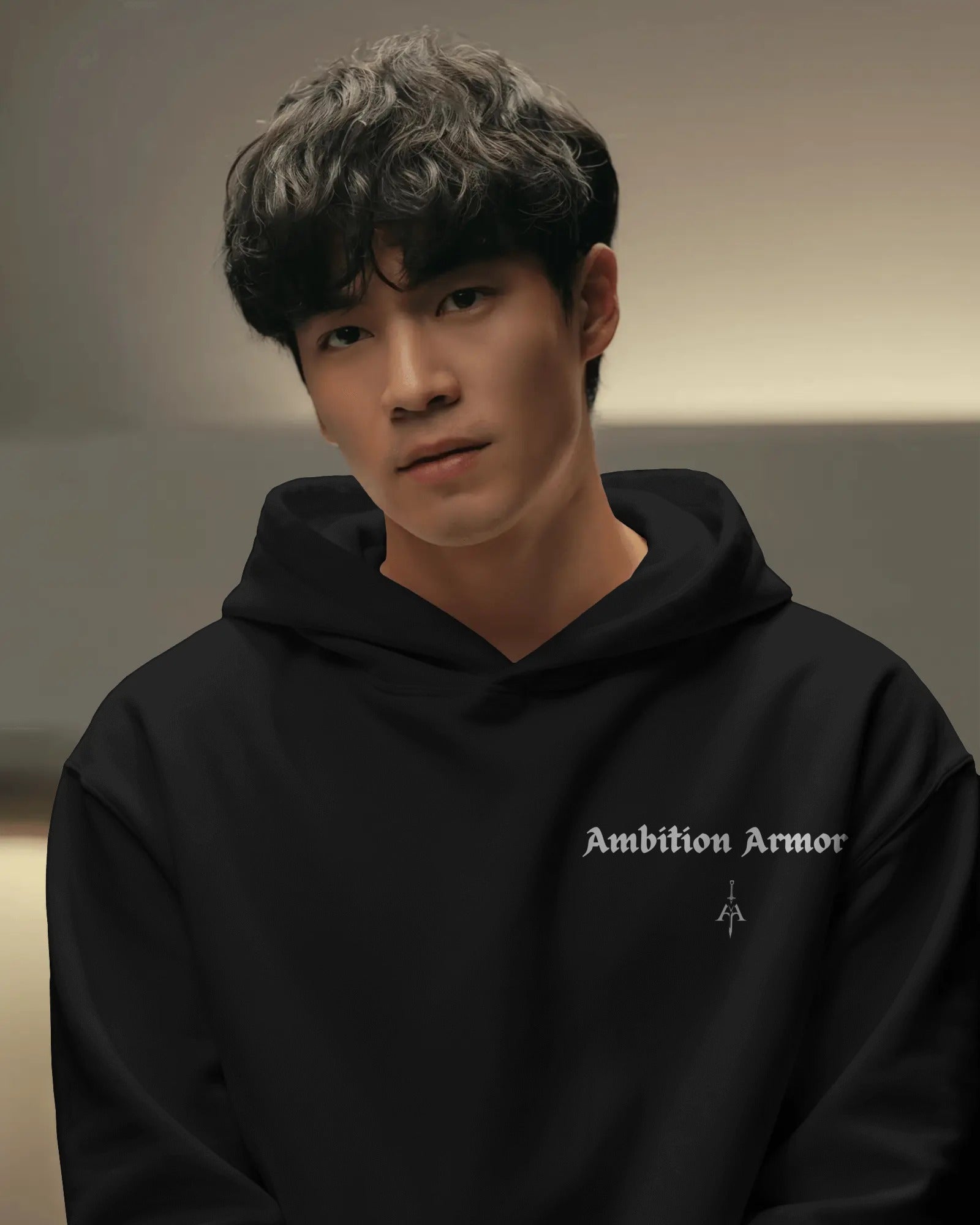 A midweight pullover hoodie with a clean front and direct back print. Balanced between structure and comfort, a piece built with the standards of modern athletic tailoring and high-end streetwear. Clean lines. No excess. Just presence. This hoodie is part of Ambition Armor's core identity: structure, clarity, and performance.